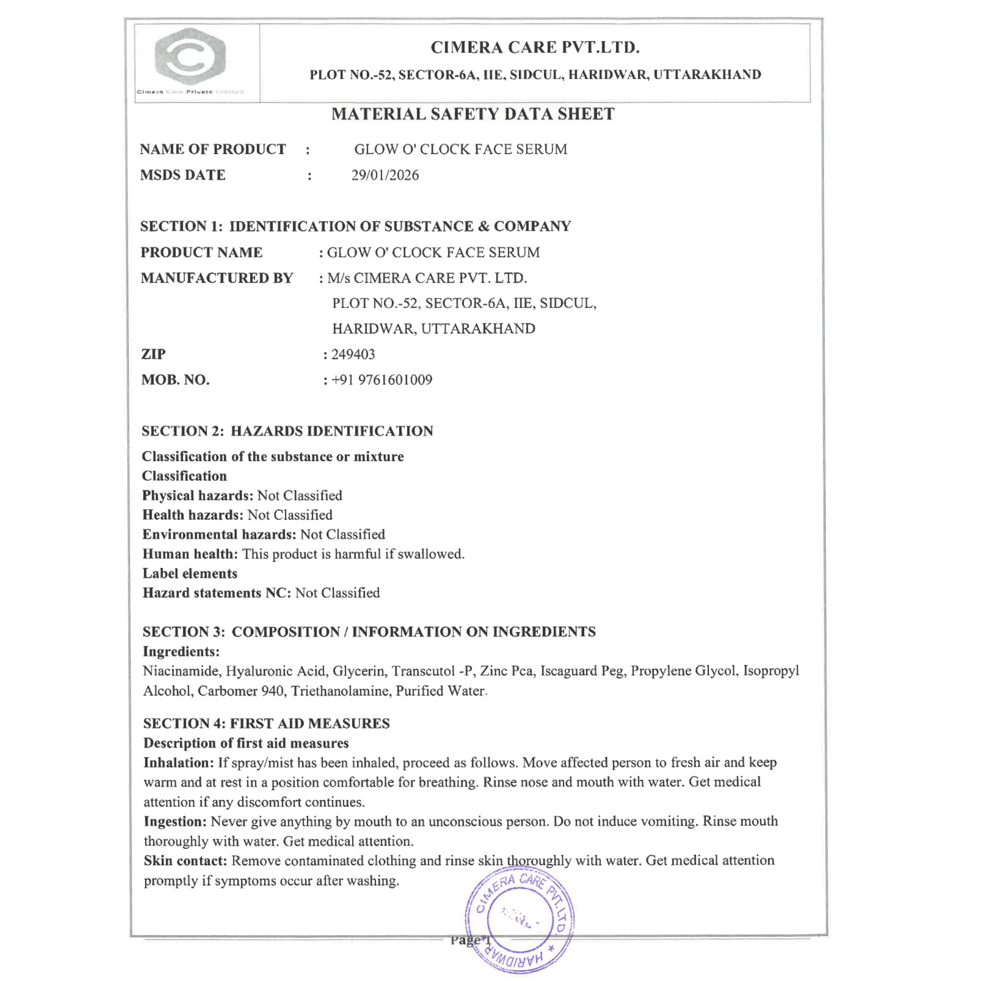 Glow'O Clock - 10% Niacinamide & Hyaluronic Acid Serum