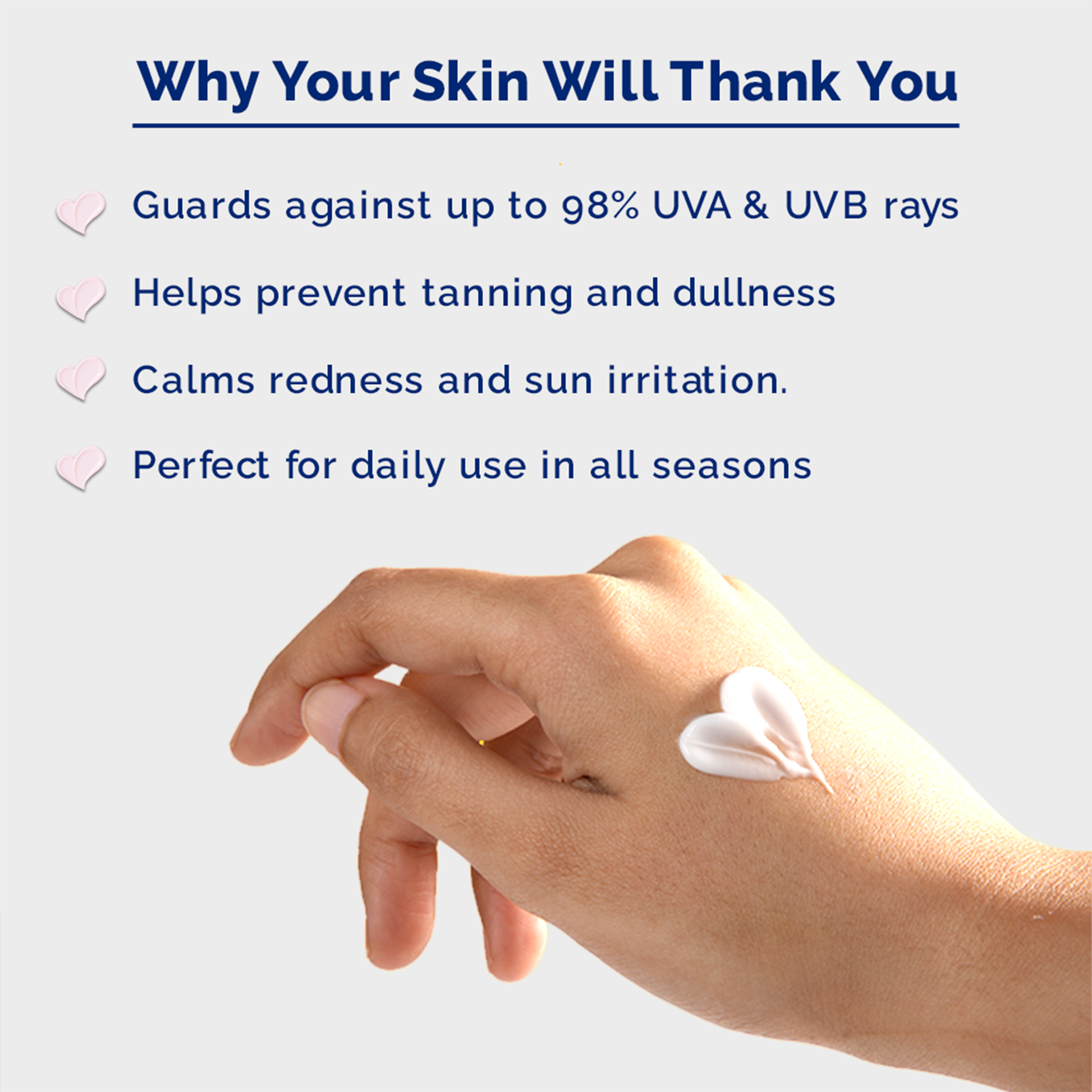 Lightweight, non-greasy SPF 50 sunscreen with Hyaluronic Acid that hydrates, protects, and blends invisibly—no white cast, just daily sun-safe glow.